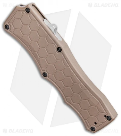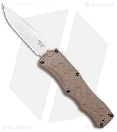 This model of the Hogue Exploit OTF sports a stonewashed clip point blade with an FDE aluminum handle and black screws.