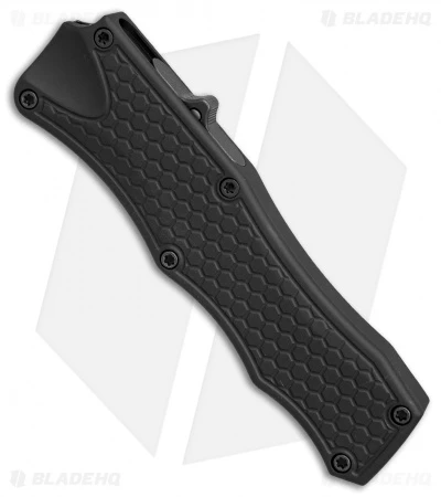 This OTF model features a black handle and a black finished tanto blade. Hogue Knives presents a new OTF contender with a spectacular design from Allen Elishewitz. The Hogue OTF features double-action deployment at incredible speeds using the prominent side mounted thumb slide. Its contoured aluminum handle is made with shallow finger grooves and a textured front pattern for improved grip during use. Includes a removable deep carry clip for discreet pocket carry.